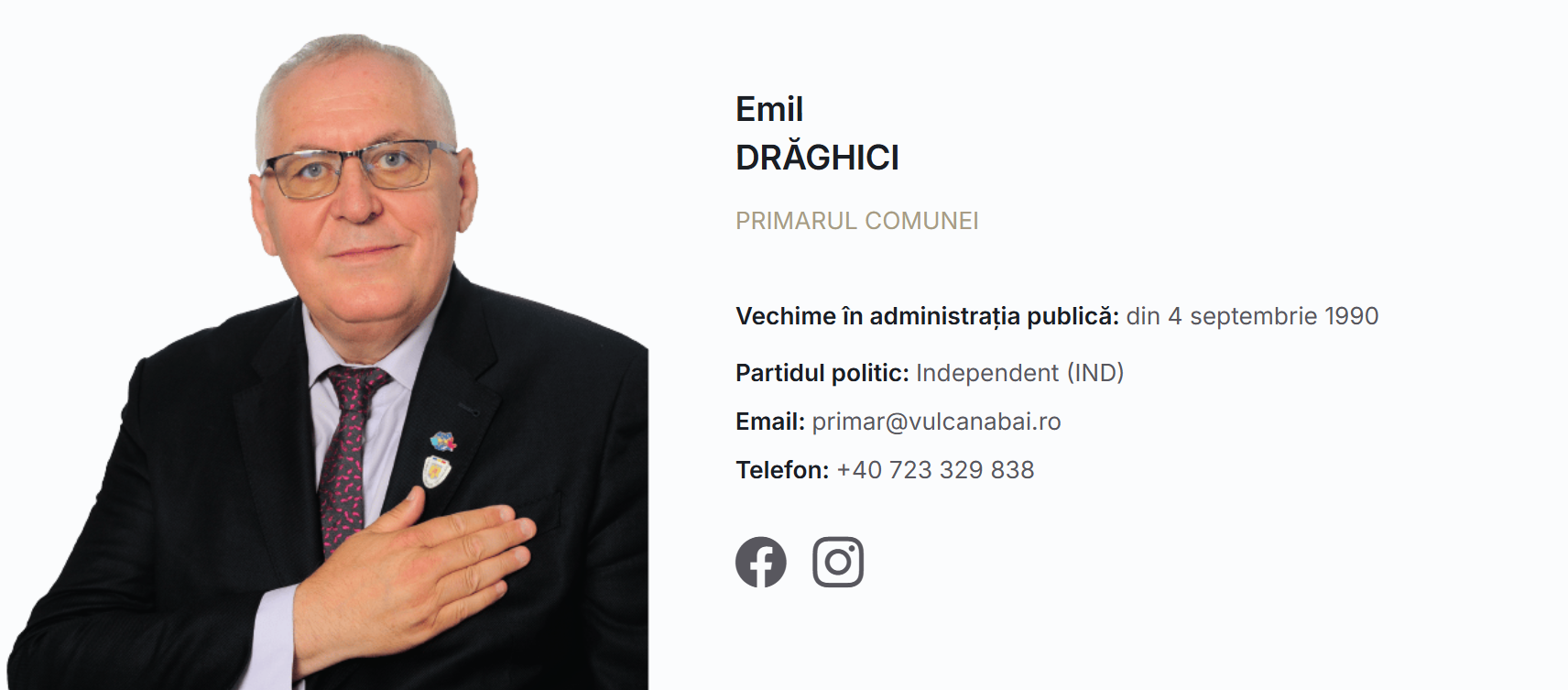 Emil Drăghici conduce primăria dâmbovițeană Vulcana-Băi din zorii democrației românești, respectiv din 4 septembrie 1990. Tot la Primărie, obținuse primul lui loc de muncă, în 18 septembrie 1978, se arată pe site-ul oficial al primăriei.
